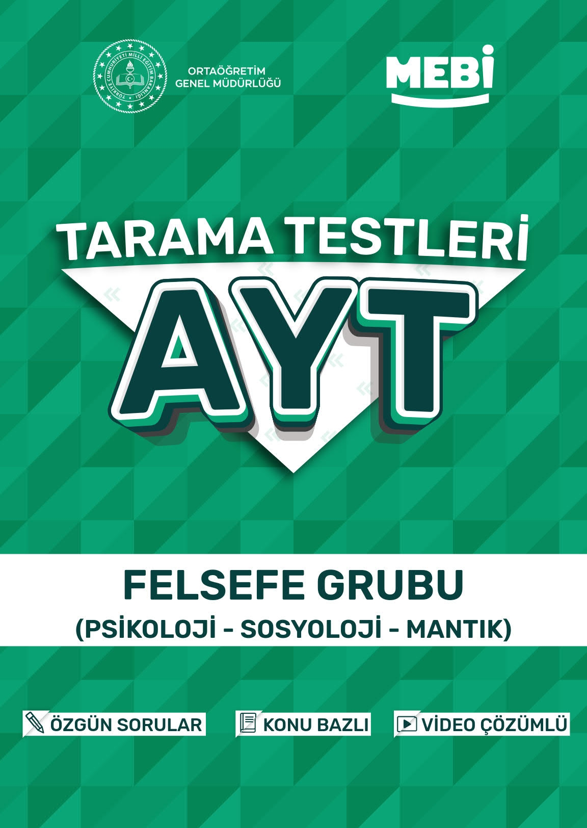 Sevgili öğrenciler, MEB AYT Tarama Testleri Felsefe Grubu (Psikoloji- Sosyoloji-Mantık) MEBİ OGM ders çalışma kitabı olarak sizlere en uygun fiyat ve en kaliteli baskıyla sunulmaktadır .