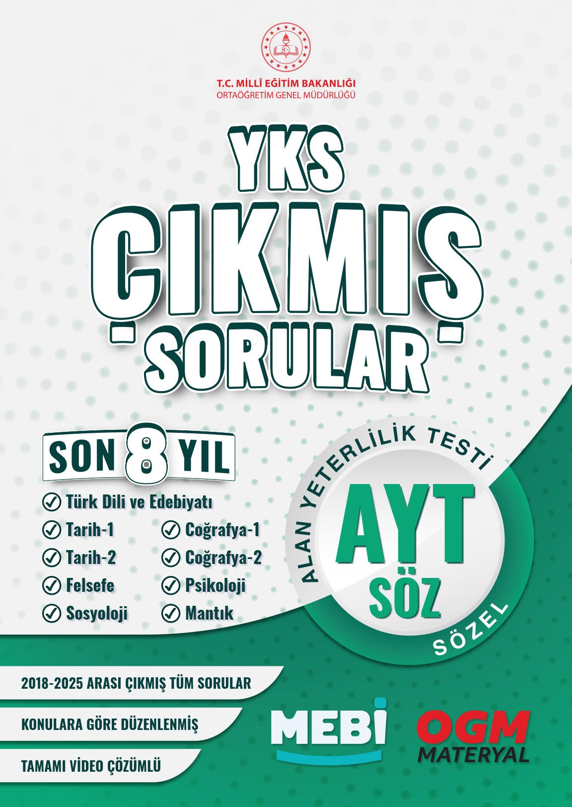öğrencilerin sınavlara hazırlanma sürecinde en büyük yardımcısıdır . Siz de hemen sitemizden MEB YKS Çıkmış Sorular AYT Sözel Son 8 Yıl (2018-205) MEB OGM ders çalışma kitabını satın alarak, akademik başarınızı arttırabilirsiniz .